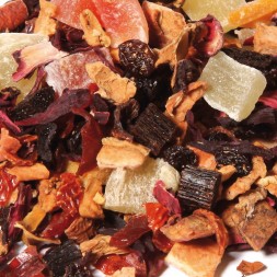 Pomme , hibiscus, cynorrhodon, raisin, morceaux de cannelle , bâtons de cannelle, AMANDE, arôme naturel.